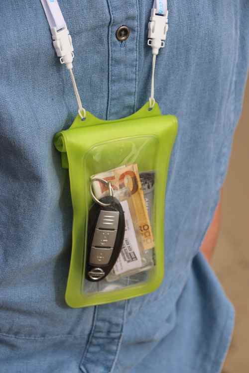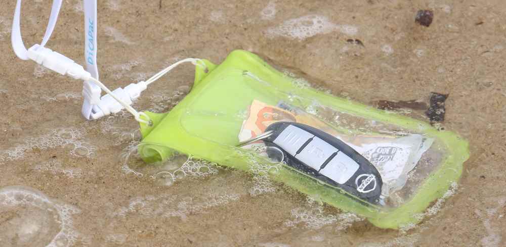 Autoschlüssel, die Kreditkarte und das Bargeld sind wasserdicht verpackt