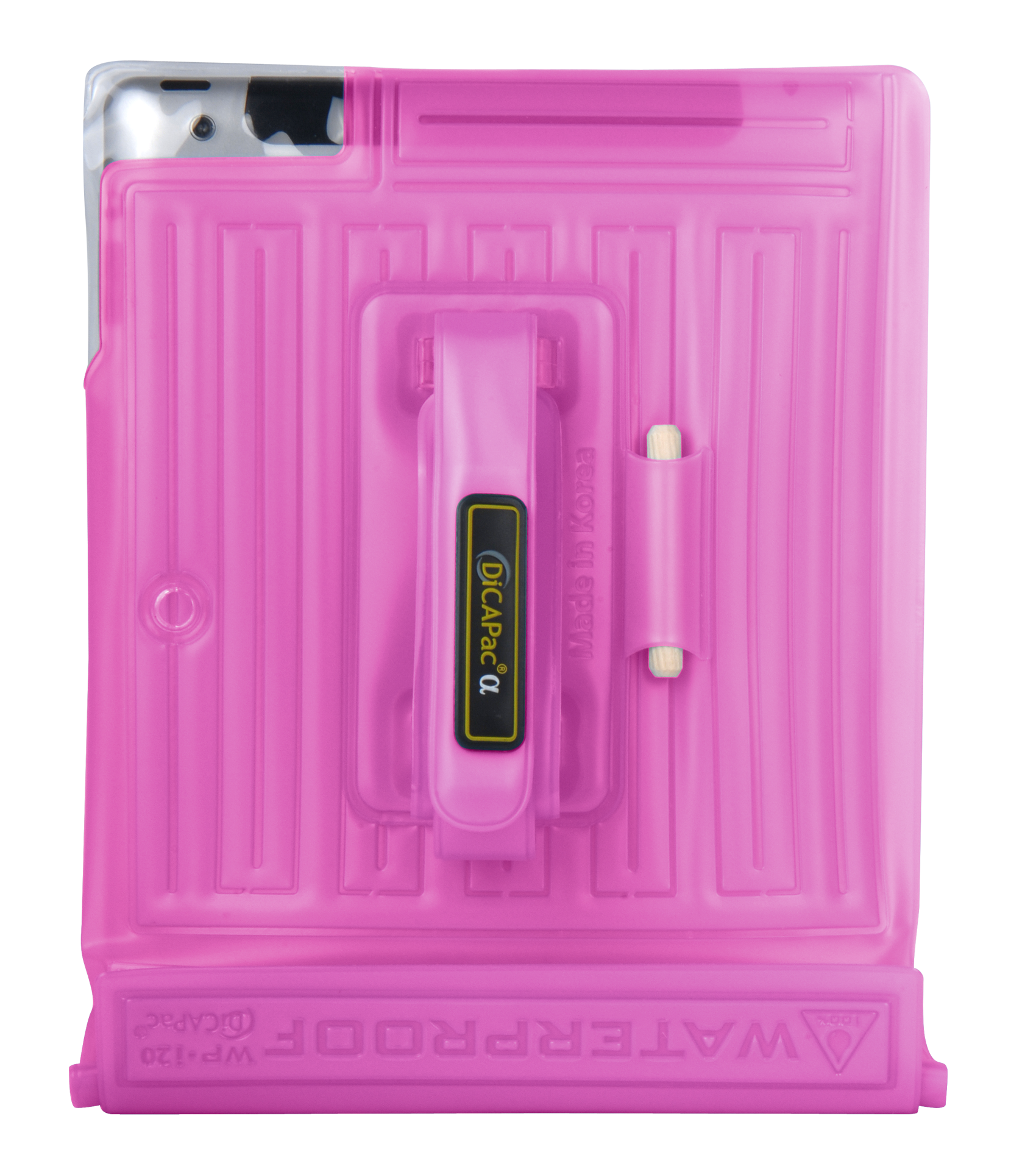 den iPad ™ -Case WP-i20*, auch ganz in pink: die kleineren iPads ™ oder Tablets anderer Hersteller vergleichbarer Cases passen in diese wasserdichte und tauchbare Tasche. Der Touchscreen funktioniert, ebenso die Kamera- und Videofunktion. Ein integriertes Luftkissen sorgt dafür, dass das Tablet nicht auf den Grund sinkt.