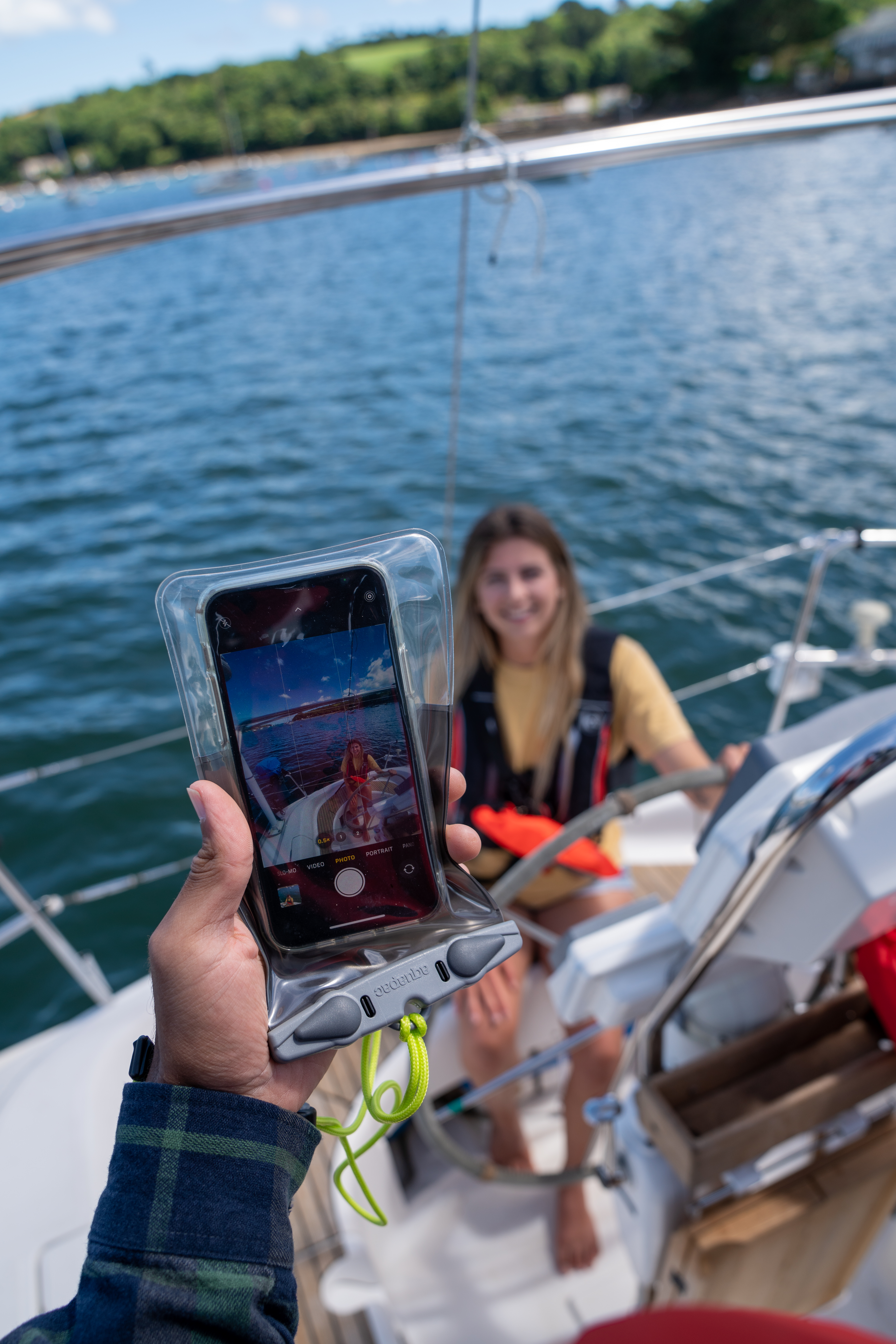 - unsere Telefontasche 358* für die derzeit gängigen Smartphone-Größen: Mit der mitgelieferten Schlaufe um den Hals gehängt, kann dem guten Stück auch bei rauer See nichts passieren. Sie haben es immer griffbereit, telefonieren durch die Folie ohne Qualitätseinbußen, auch in Notfällen. Durch die Lenzflexfolie auf der Rückseite können Fotos geschossen werden - ohne das Sie ihr Smartphone den Wetterunbillen oder der überschwappenden Welle aussetzen müssen. Übrigens: Der Case schützt auch davor, dass das Smartphone unbeabsichtigt aus der Hemd- oder Hosentasche ins Wasser fällt - was unserem "Rekord-Kapitän" sieben Mal passiert ist - jetzt hat er ein Aquapac.