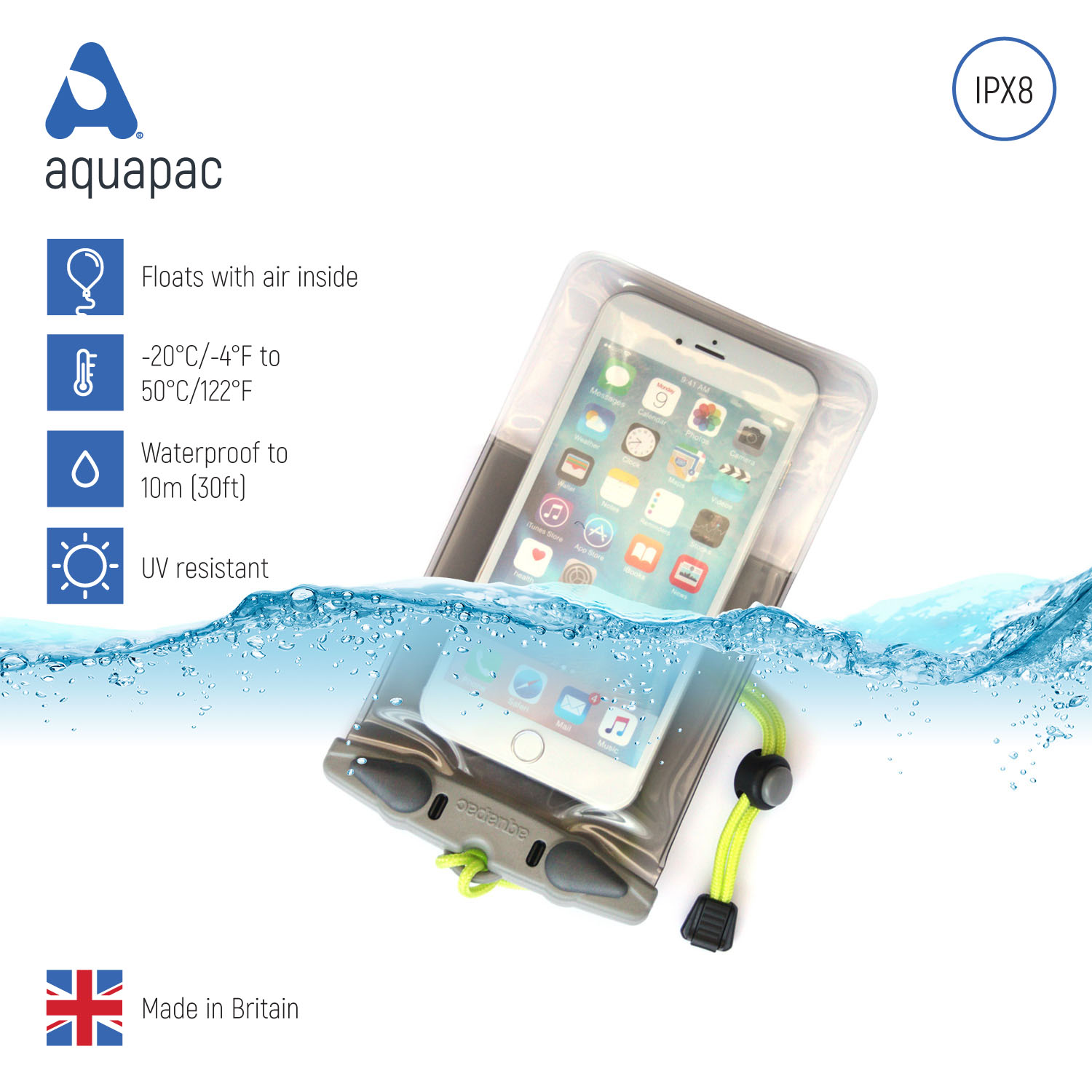 - Die Hüfttasche 822* von Aquapac in cyan-blau: Die wichtigen persönlichen Wertgegenstände immer erreichbar und wasserdicht dabei. Verschlossen wird die Tasche mit einem Rollsiegelverschluss, eine Außentasche mit wasserresistentem Reißverschluss bietet weiteren Komfort. Der Hüftgürtel ist gepolstert und 133 Zentimeter lang. Material: abriebfestes 500D Vinyl. Wasserdicht nach IPX6, übersteht also kurzzeitiges Untertauchen, wenn Sie etwa durch einen Bach waten müssen.