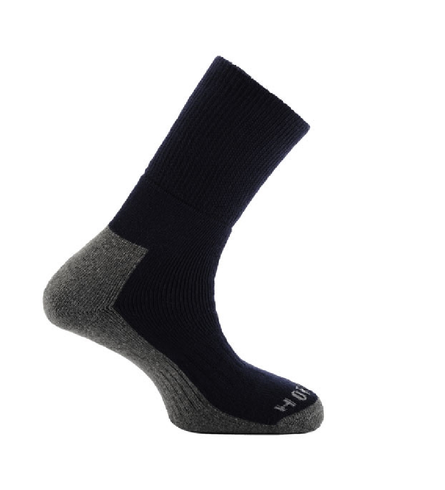 Deluxe Freizeit Socken ein „Must-Have“, mit vollständig gepolsterten Fuß, ein nicht einschränkendes Rippstrickbein, egal in welchem Camp Sie sich befinden, weich & bequem, in der Farbe: marineblau-grau.