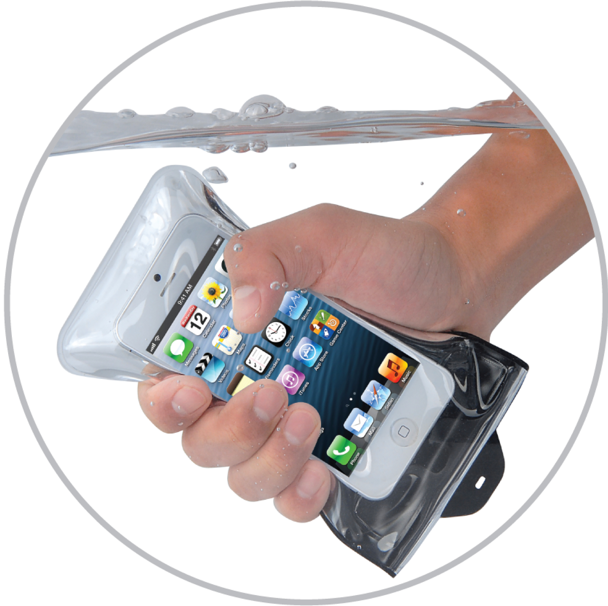 Sie haben ein größeres Smartphone oder ein GPS und möchten es überall mit hinnehmen. Wenn Sie oft und bei jedem Wetter draußen unterwegs sind oder auf dem Wasser, kennen Sie die Probleme: Wasser, Sand und Schmutz setzen dem Gerät zu. So packen Sie einfach Ihr Gerät ins Dicapac. Und alles ist sicher. Sprech- und Hörqualität sind nicht beeinträchtigt, der Empfang ebenfalls nicht. Und selbst der Touchscreen funktioniert. Und auf der Rückseite haben wir eine spezielle klare Foto-Folie eingeschweißt. So können Sie wie gewohnt mit ihrem Handy oder Smartphone fotografieren.
