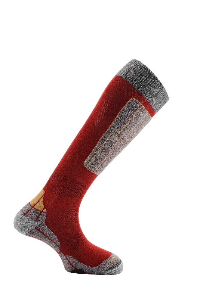 - Extrafeine Wolle (Merinowolle) mit Cordura® & Thermolite® in diesen technischen Ski Socken in der Farbe: dunkelrot-grau-gold.