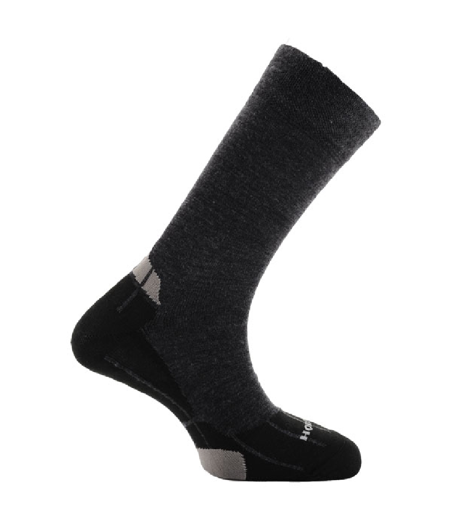 Klassische ultradünne Wandersocken aus mittelschwerer Wolle (Merinowolle) in Kombination mit Thermolite®, warm, strapazierfähig mit hervorragender Passform durch Lycra®. In den Farben: schwarz-anthrazit-grau + anthrazit-schwarz-grau. Diese traditionelle Socke macht Sonntag- und Hundespaziergänge noch angenehmer.